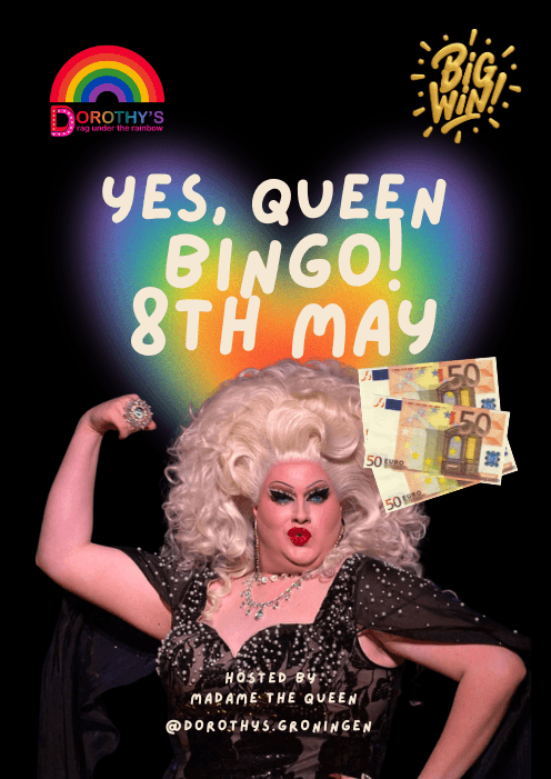 Drag Bingo - join Madame the Queen at a fun Bingo, with laughs and prizes galore, including the chance to win a star prize of 50 EUR cash! . Starts 8pm. Free to enter if you buy drinks - bingo cards cost 2.50 each.